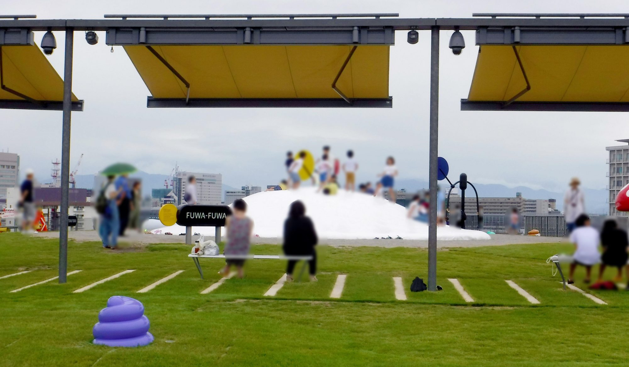 「みどりちゃん」は芝生との相性も良く、子供達の遊び場を目的として学校屋上や屋上庭園などにも多く採用されています。 富山県美術館では、遊具設置の際、ユニック等重機の荷重に耐えうる高い耐久性も「みどりちゃん」採用理由の一つでした。